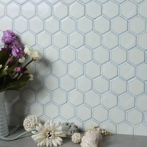 Modern Hexagon Ceramic Mosaic Tile Glossy Matte Finish Interior Wall Villa Hotel Kitchen Ink-jet Print Tile